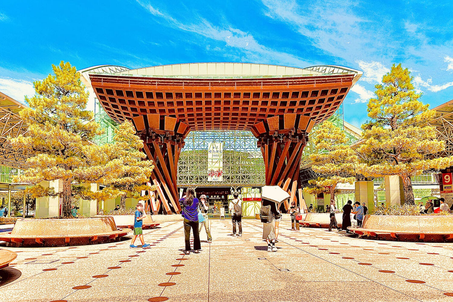 北陸地方の主要駅で、北陸新幹線や在来線が乗り入れています。鼓門(つづみもん)とガラス張りのもてなしドームが象徴的な駅舎で、観光の玄関口として知られています。周辺には商業施設やホテルも多く、交通・観光の拠点となっています。