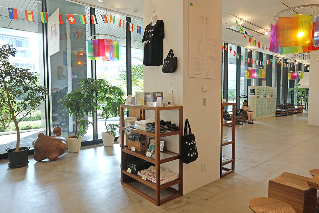![]() 入口を入ると奥に受付があります | ![]() 会場内には関連グッズが陳列されています |