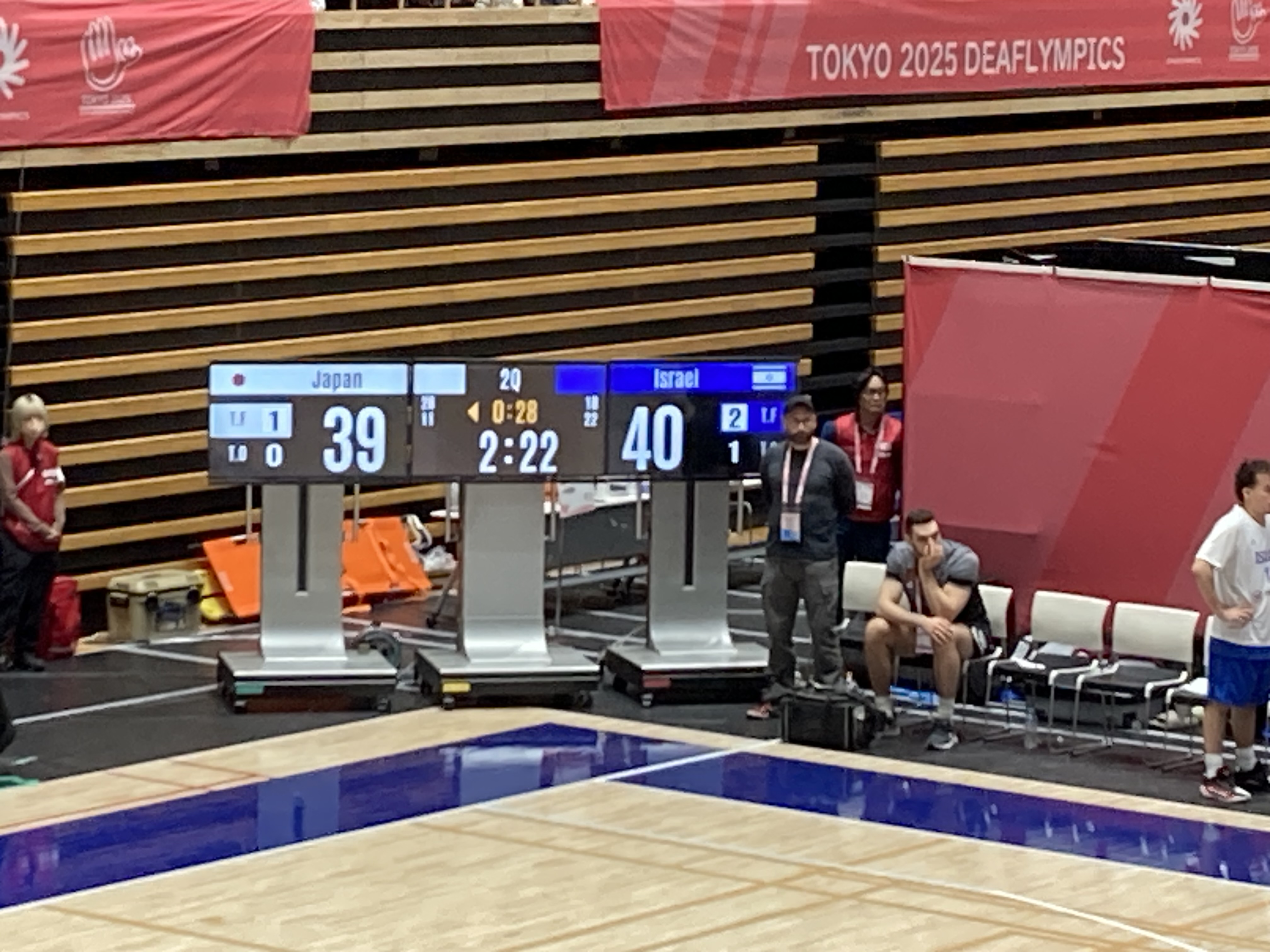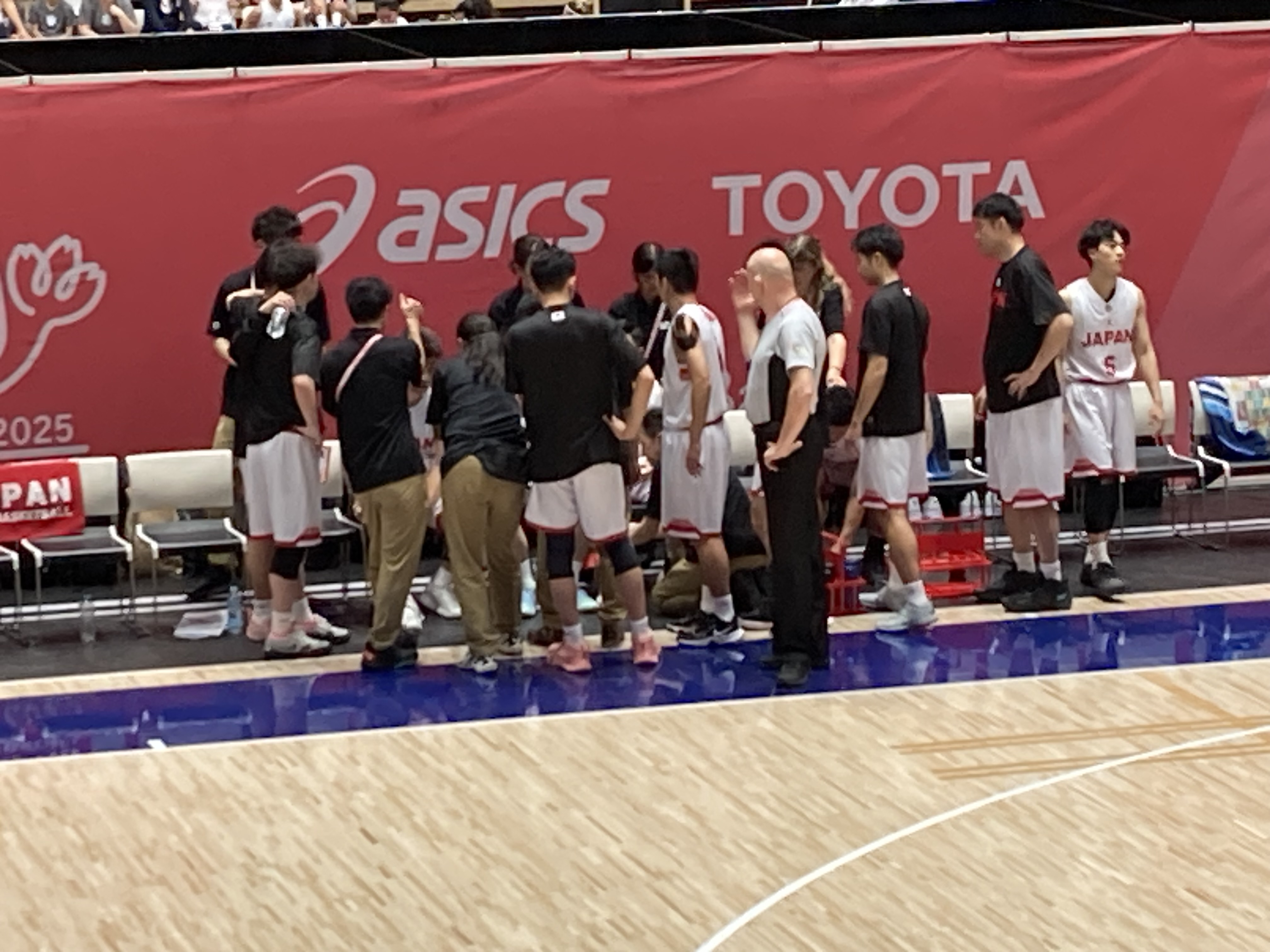 ![]() たまらず日本タイムアウト! | ![]() 第2クォーター終了 41対45 逆転されたがまだまだ4点差、日本fight! |