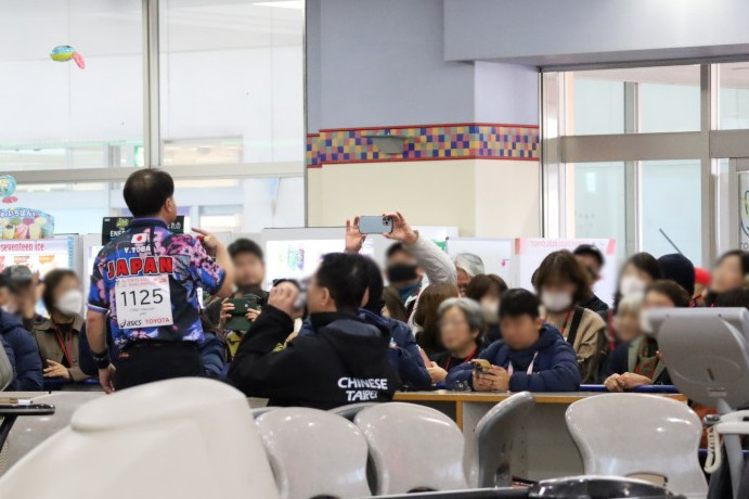 ![]() 競技開始前の会場 | ![]() レーンを見定める戸羽選手 |