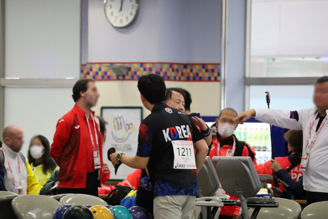 ![]() 丁寧な投球を貫いた戸羽選手。しかし試合は158対180で惜敗し、結果、ラウンド2の勝ち点は6となりました。 | ![]() 戸羽選手以外の4人に勝ち準決勝に進むことが決まったパク選手と熱いハグ。両者のリスペクトを感じました |