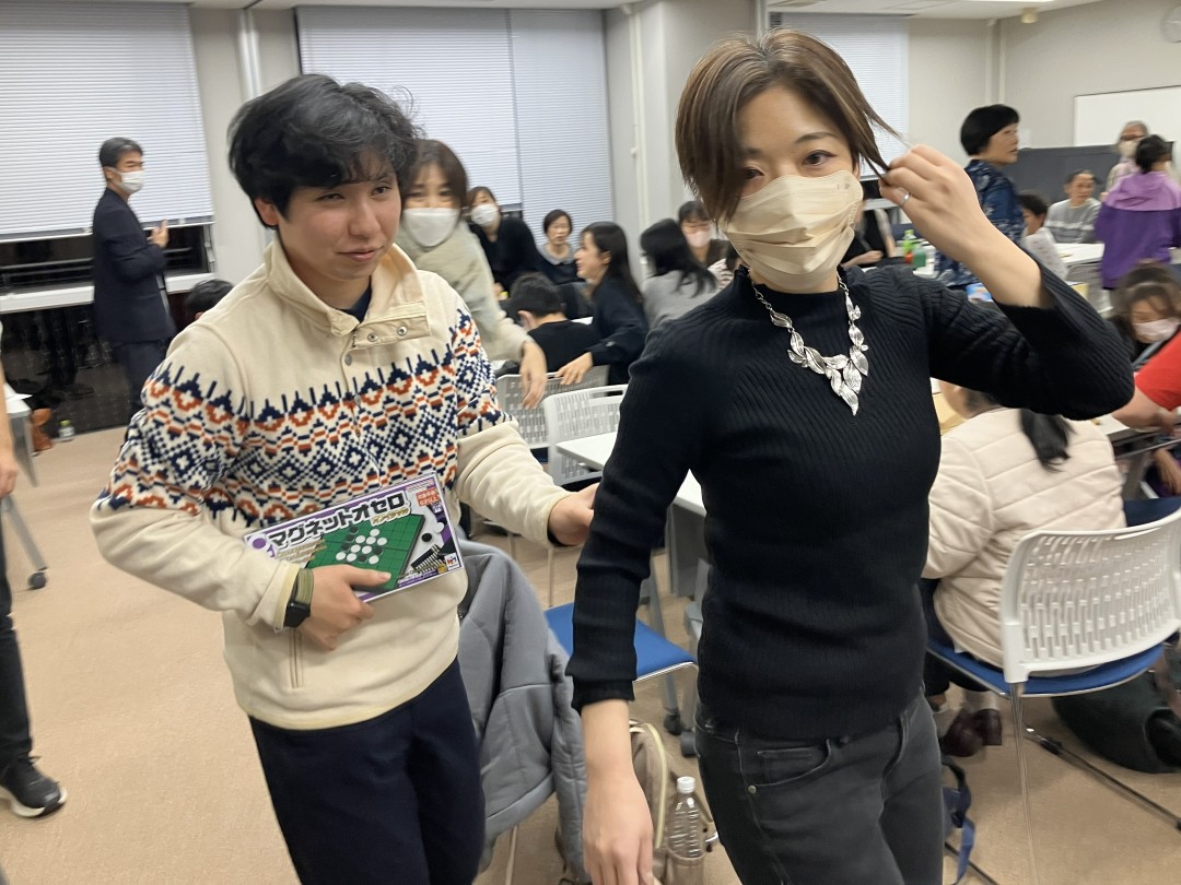 ![]() 3位のKさんはプラレールをもらいました。 | ![]() オセロはやっぱり人気のようです。 |