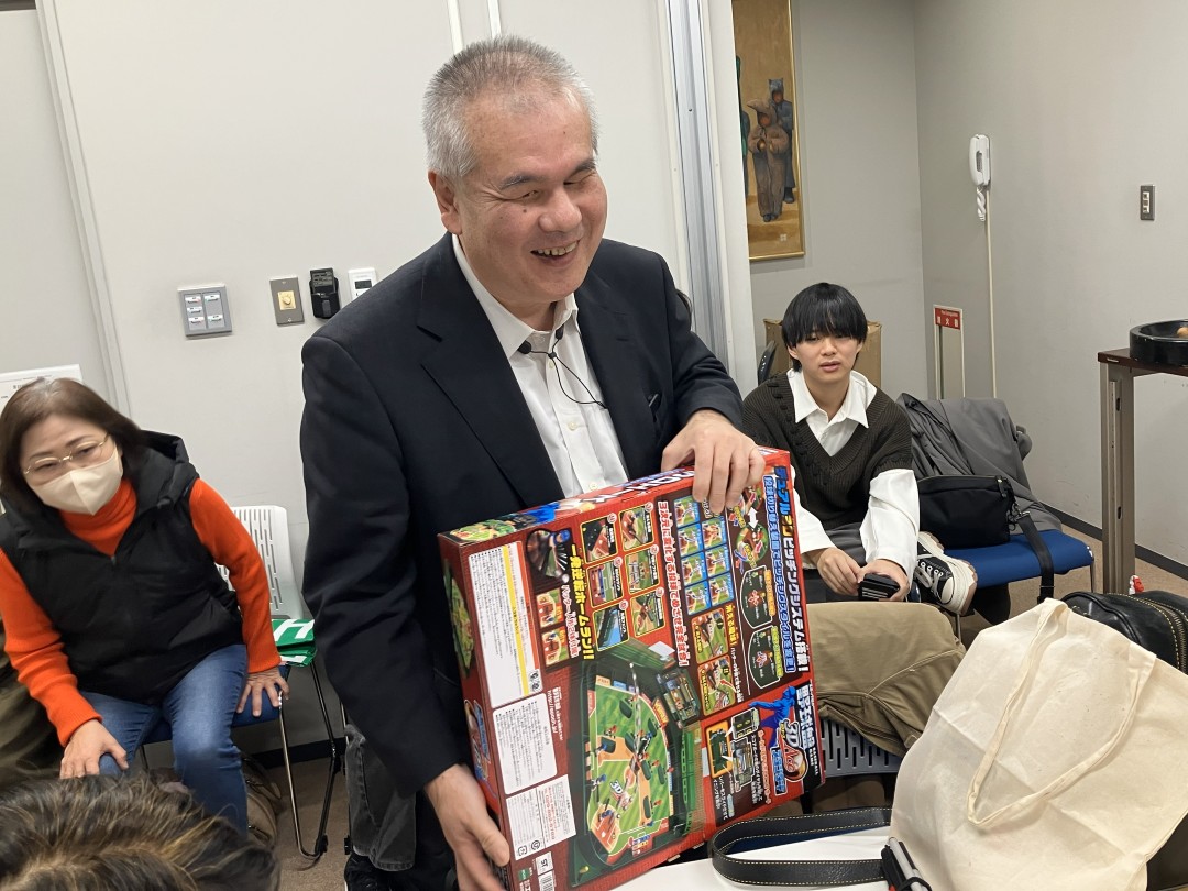 12月6日に高田馬場の日本点字図書館で行われたクリスマスゲーム会の紹介レポート第2弾として、今回は景品の授与と参加者へのインタビューの様子をご紹介します。ゲームの様子は前回の記事で紹介していますので、まだ読んでいない方は、ぜひレポート①~大盛り上がりのゲーム会編~からご覧ください。