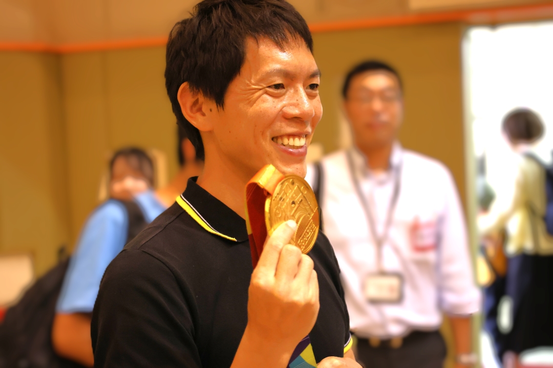 競技後は2019年ドーハで行われた世界選手権で獲得された金メダルも見せて頂きました。さわっていいですか?もちろんです!と鈴木氏は快く参加者との交流を楽しんでいただけたようでした。