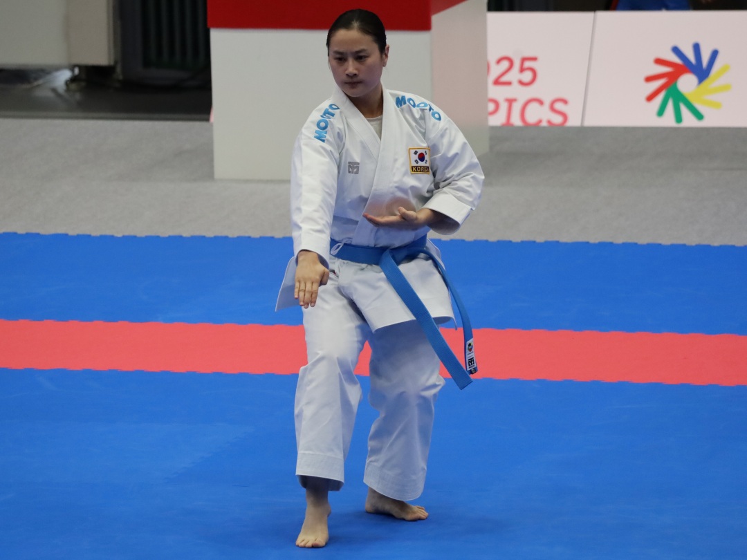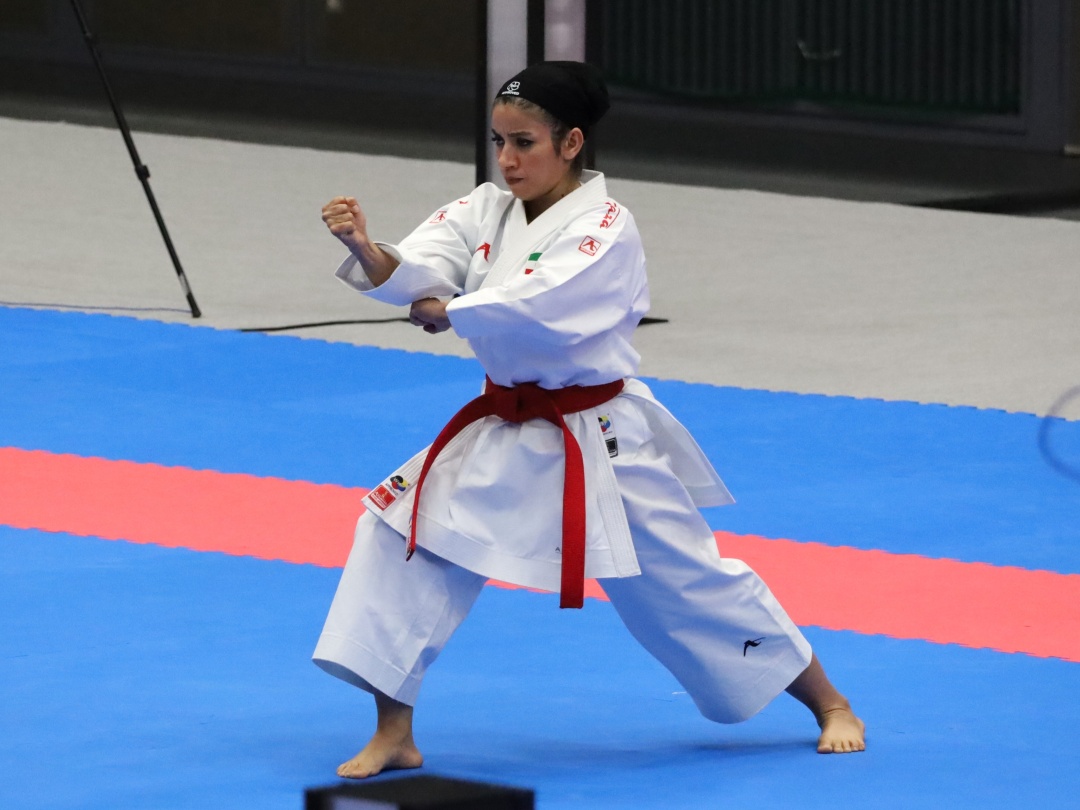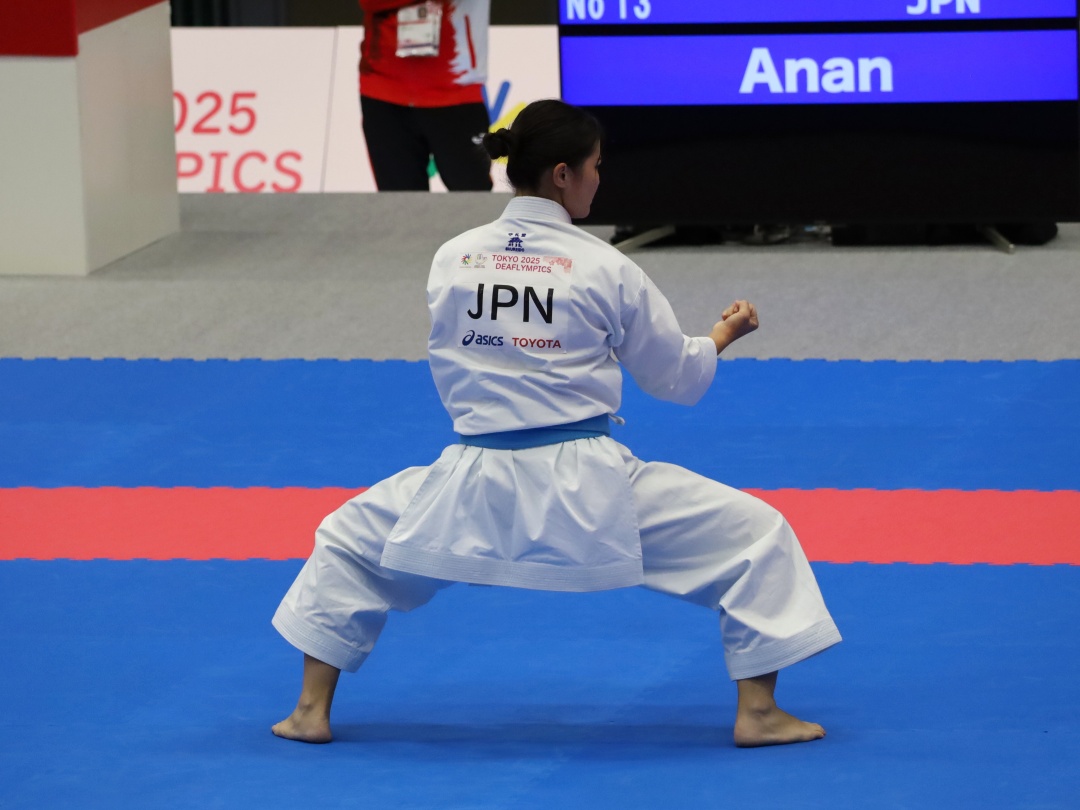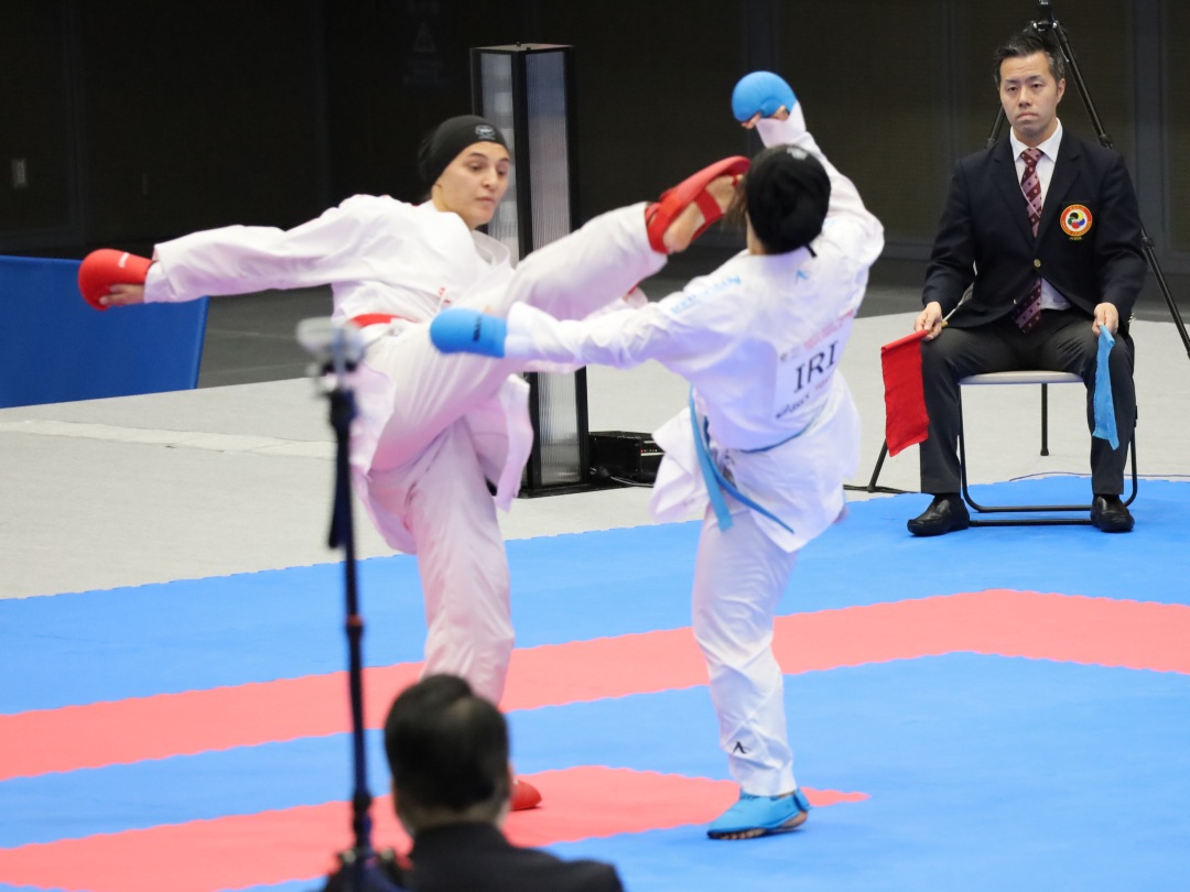 ![]() 決勝戦で対峙するのはイランのゴルチェフレ選手。 | ![]() 森選手が披露するのは「アナン」という形。 |