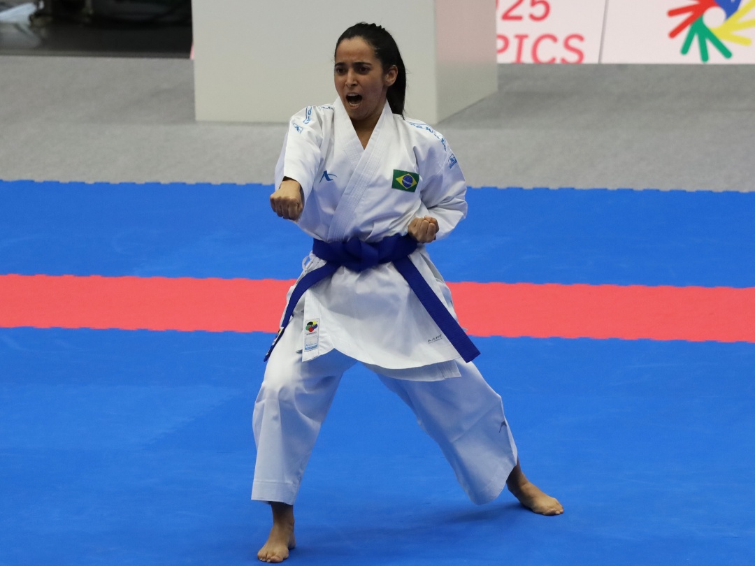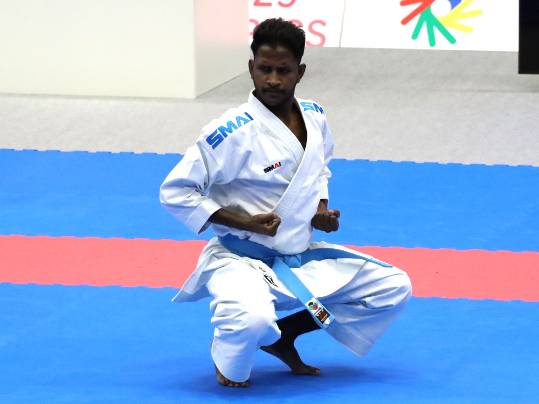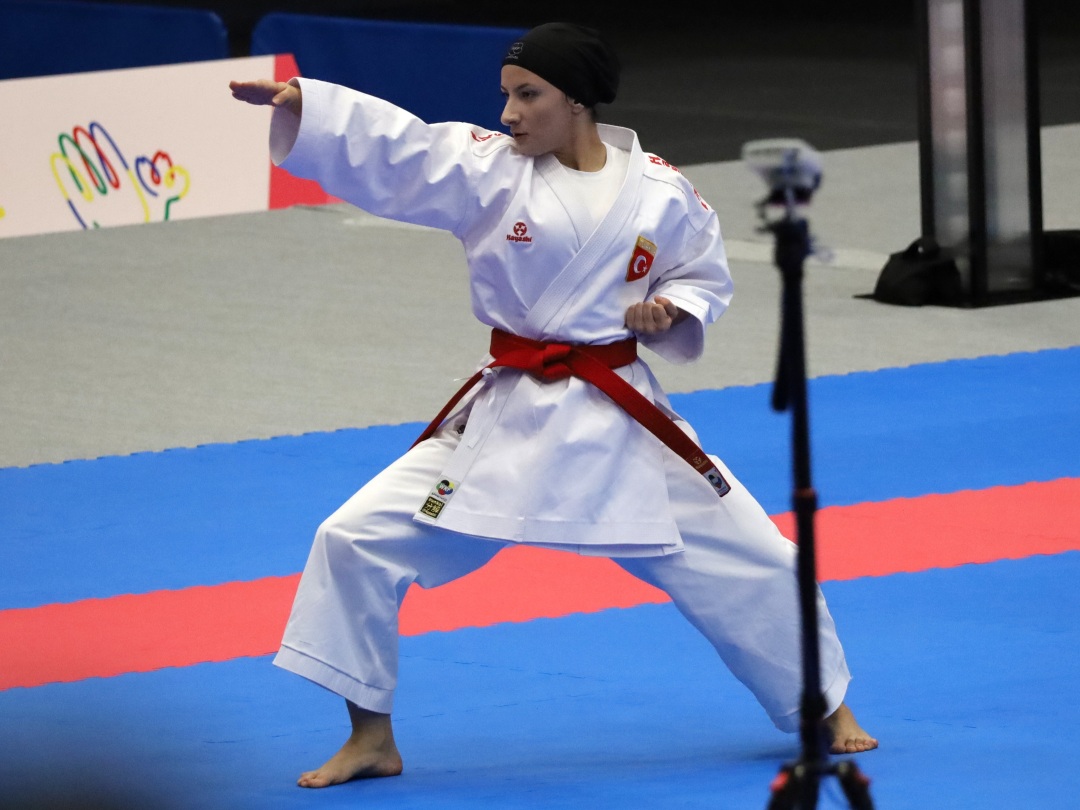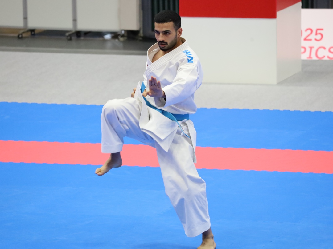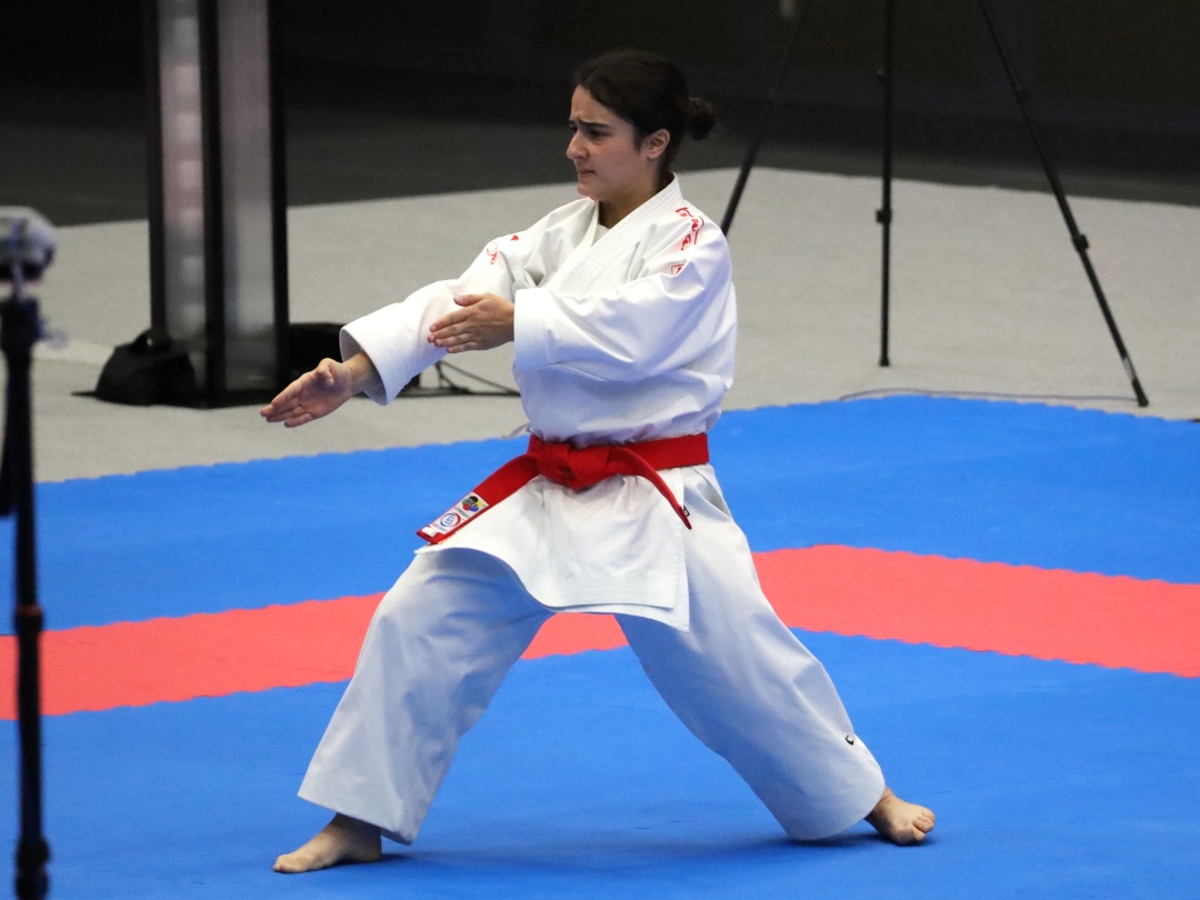![]() 決勝戦で対峙するのはイランのゴルチェフレ選手。 | ![]() 森選手が披露するのは「アナン」という形。 |