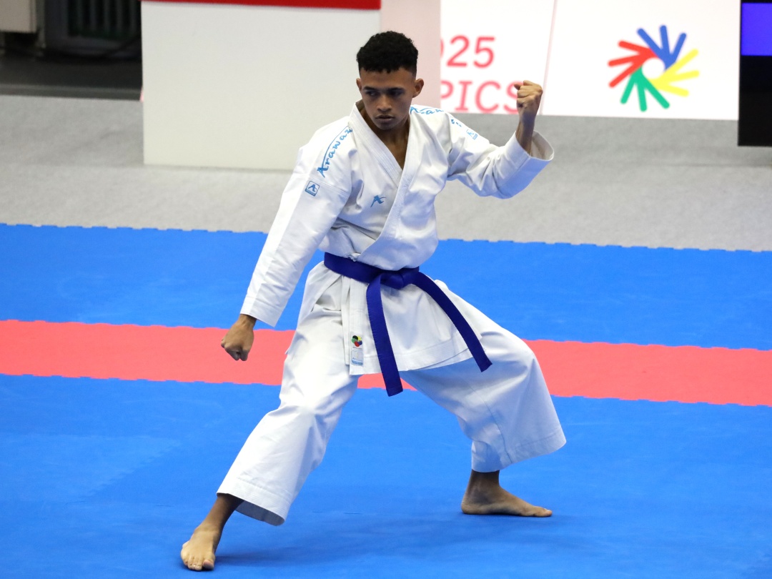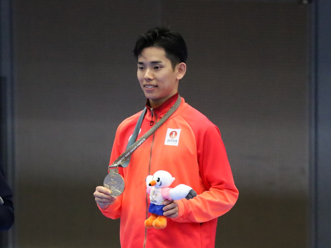 ![]() 日本代表森 健司選手。一回戦は40.2点の1位、二回戦は42.2点の1位、決勝戦では40.7点で勝利し、金メダルを獲得しました。 | ![]() ベネズエラのガルシア ラモン アレハンドロ選手。一回戦は34.6点の3位、二回戦は37.2点の2位、3位決定戦では36.9点で敗れました。 |