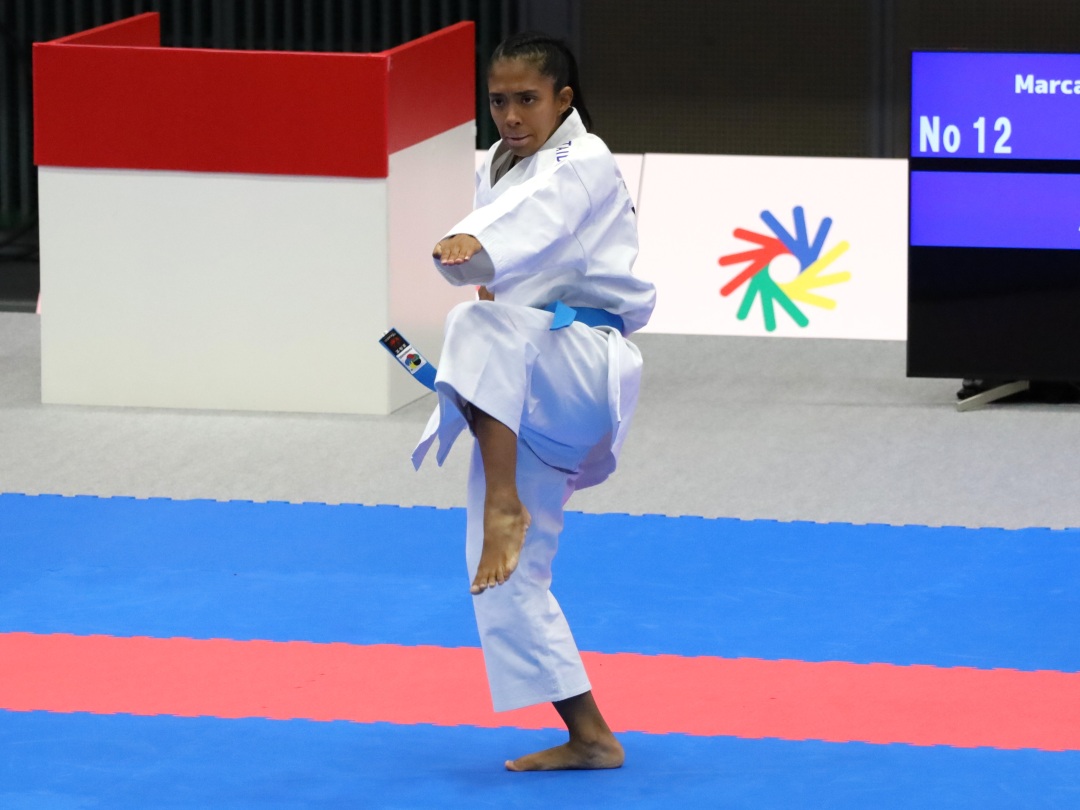 ![]() ブラジルのバイーア・イザベラ・ヴィエイラ・ダ・シウヴァ選手。31.4点で一回戦敗退となりました。 | ![]() インドのスワイン ローワ選手。32.8点で一回戦敗退となりました。 |