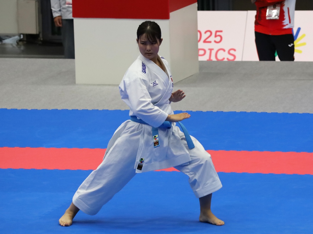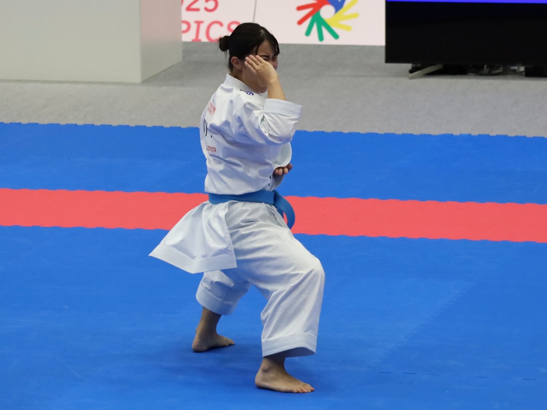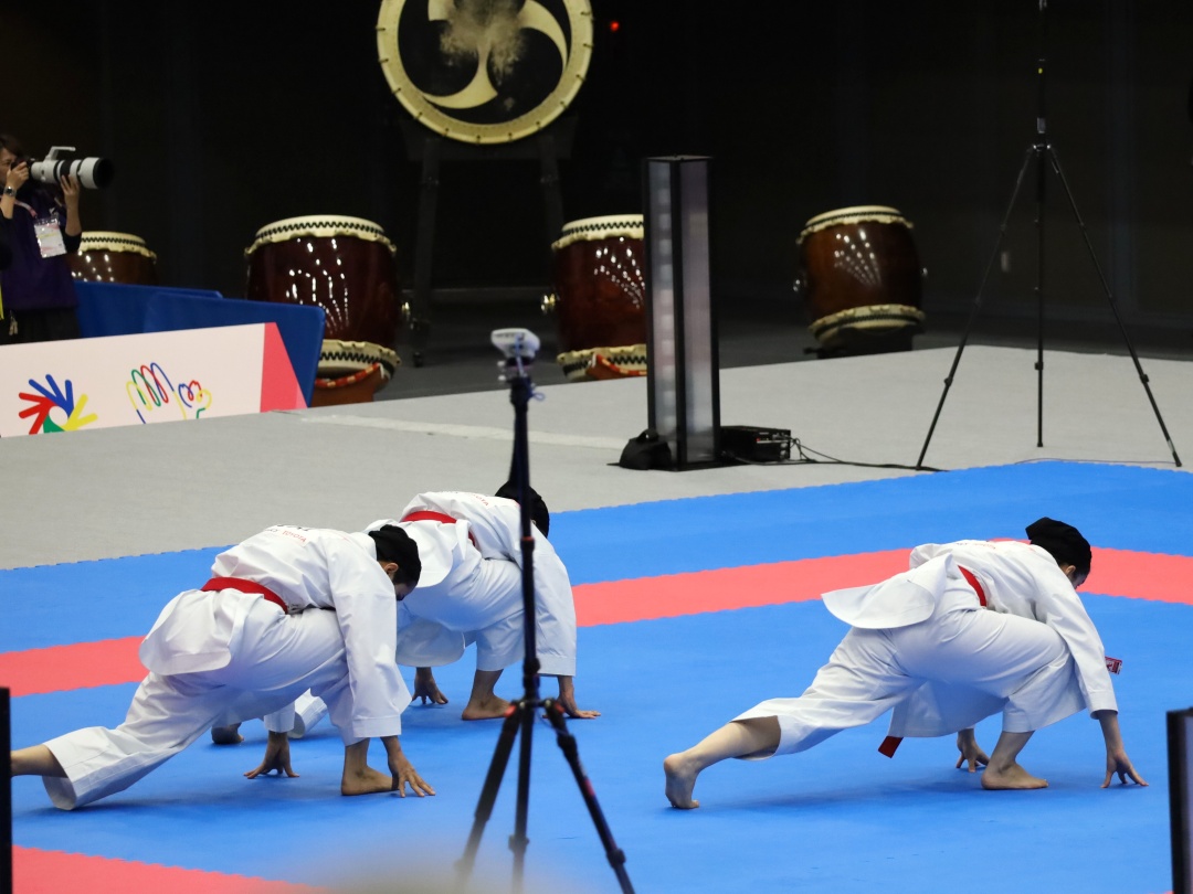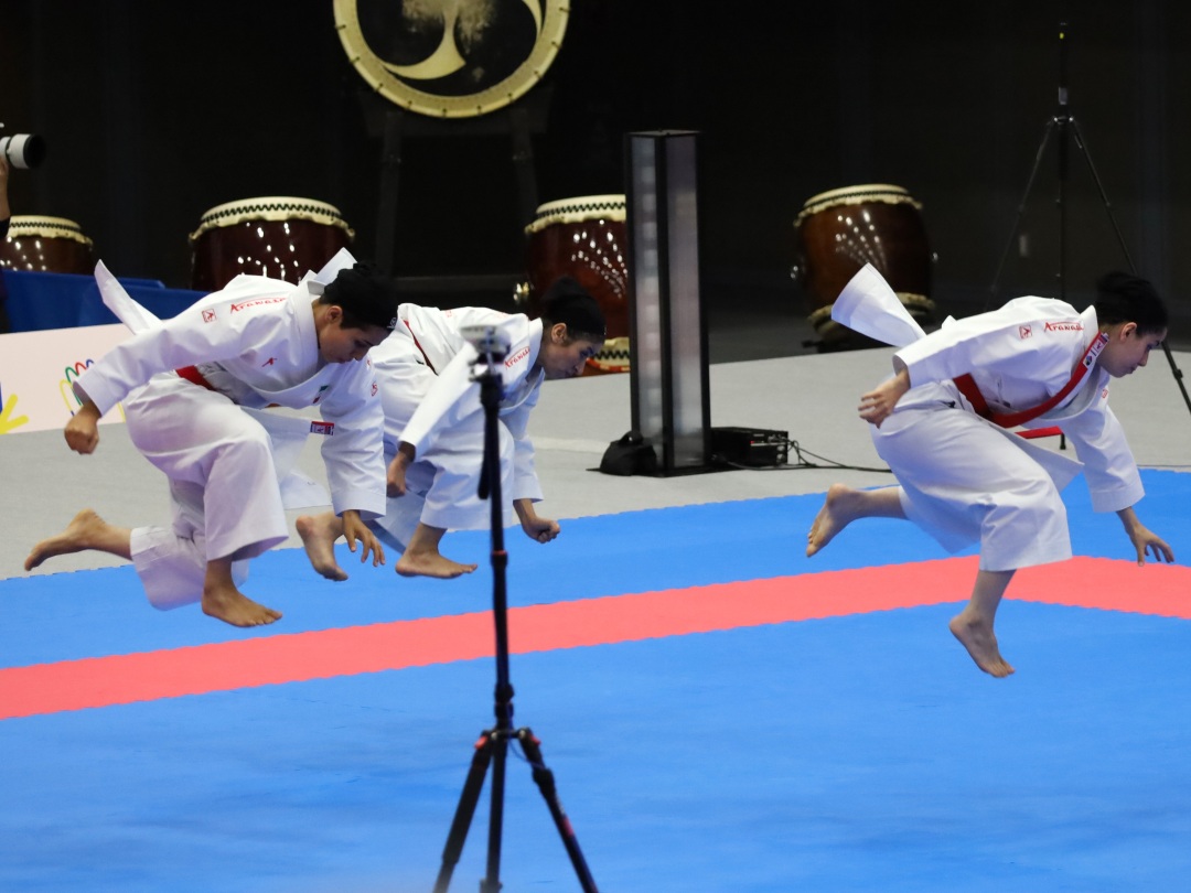 この日、「男子 形」では森 健司選手が金メダル、「女子 形」では小倉 涼選手が銅メダル、「女子 形 団体戦」では湯澤 葵選手、森 こころ選手、金子 陽音(はるね)選手が金メダルを獲得するメダルラッシュとなりました!