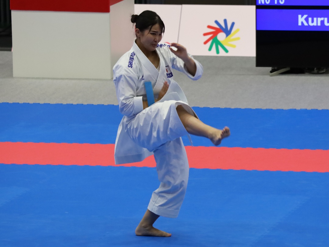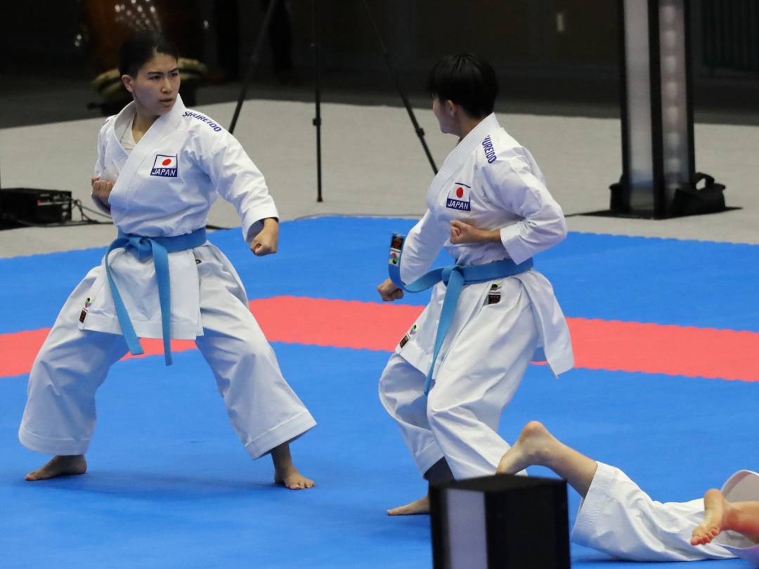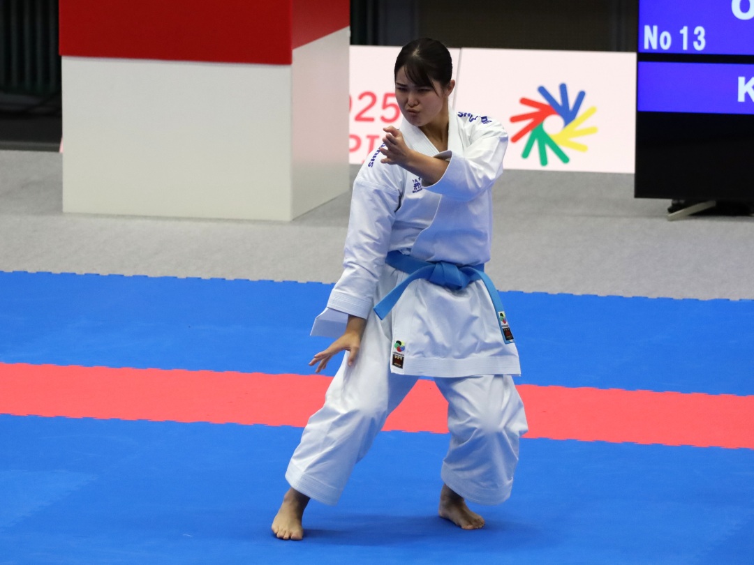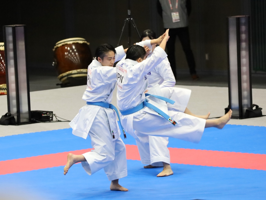 この日、「男子 形」では森 健司選手が金メダル、「女子 形」では小倉 涼選手が銅メダル、「女子 形 団体戦」では湯澤 葵選手、森 こころ選手、金子 陽音(はるね)選手が金メダルを獲得するメダルラッシュとなりました!