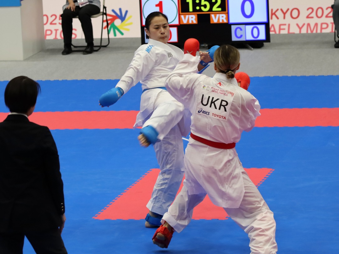 この日は組手の試合も行われました。日本代表選手は出場しませんでしたが、男女ともに重量級の試合はとても迫力がありました。
