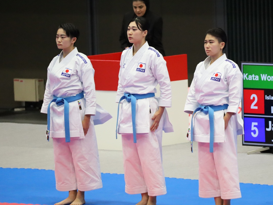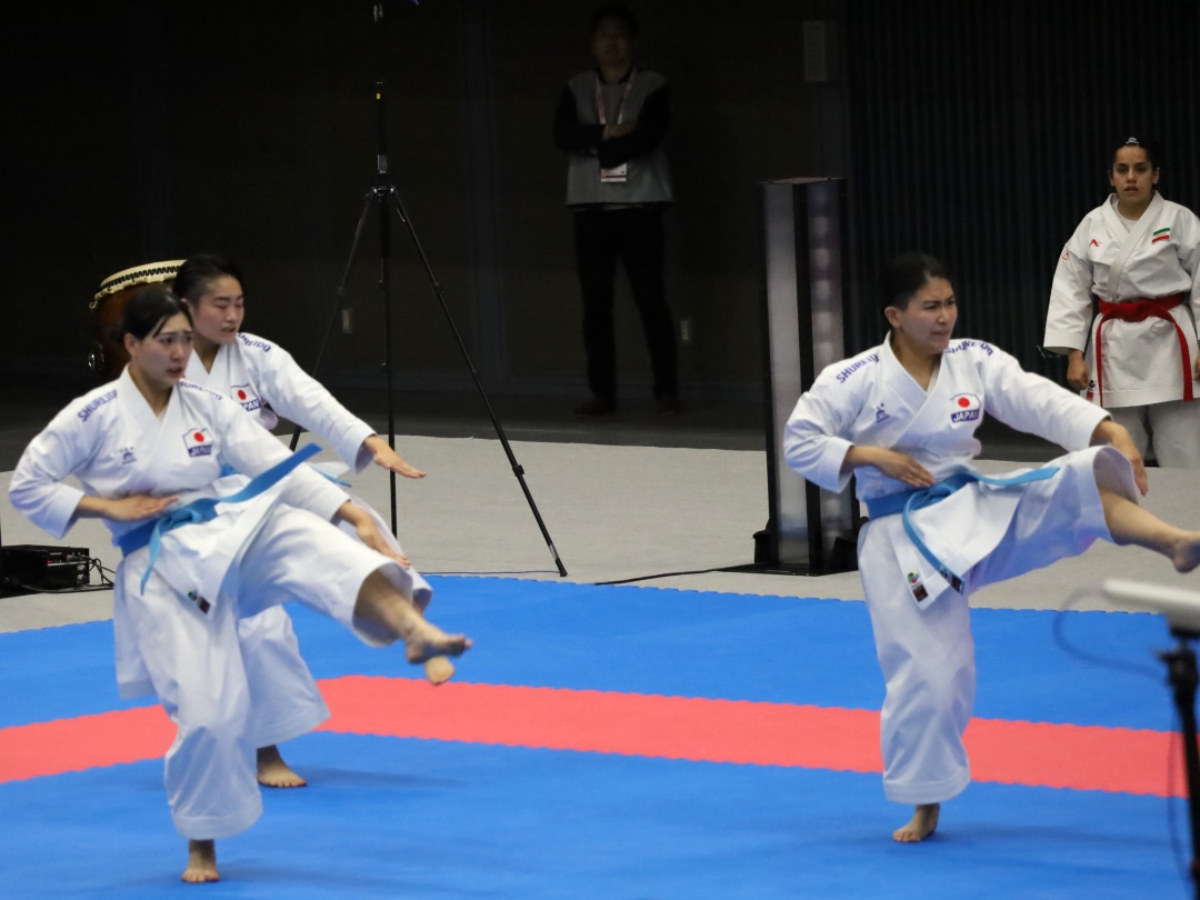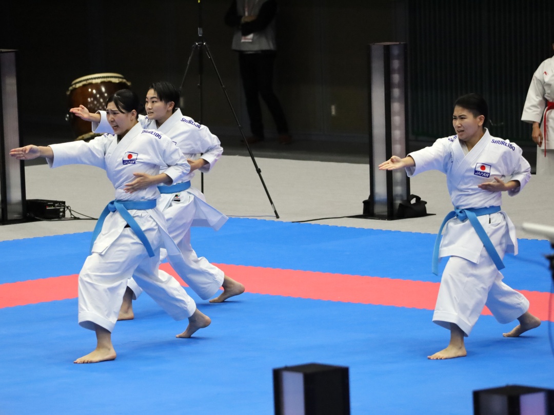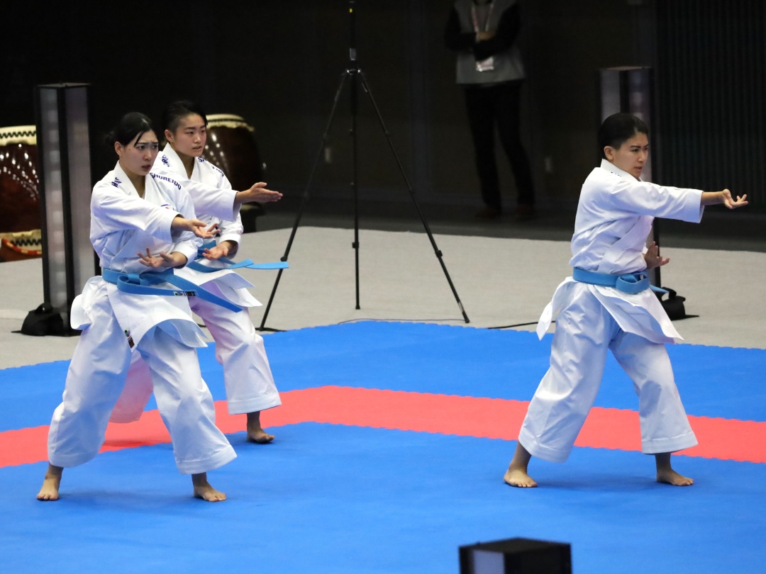 女子 形 団体戦 息ピッタリの湯澤選手、森選手、金子選手